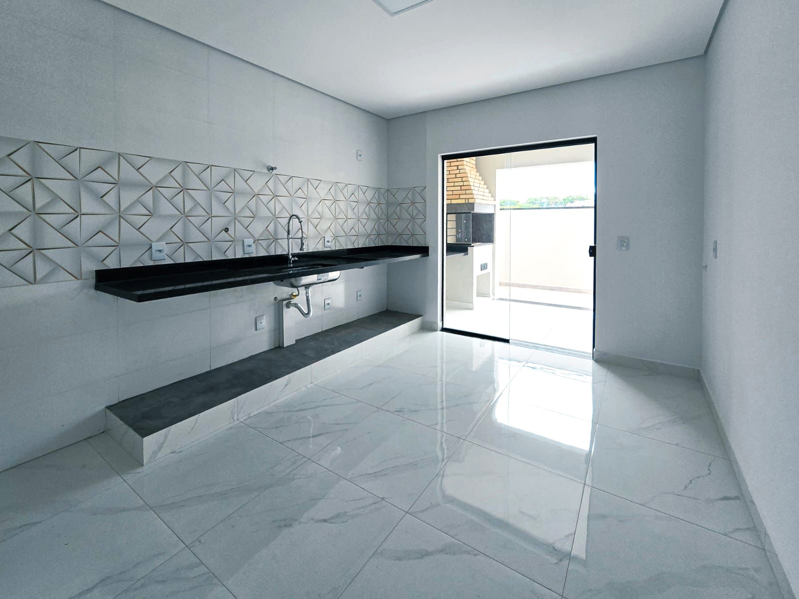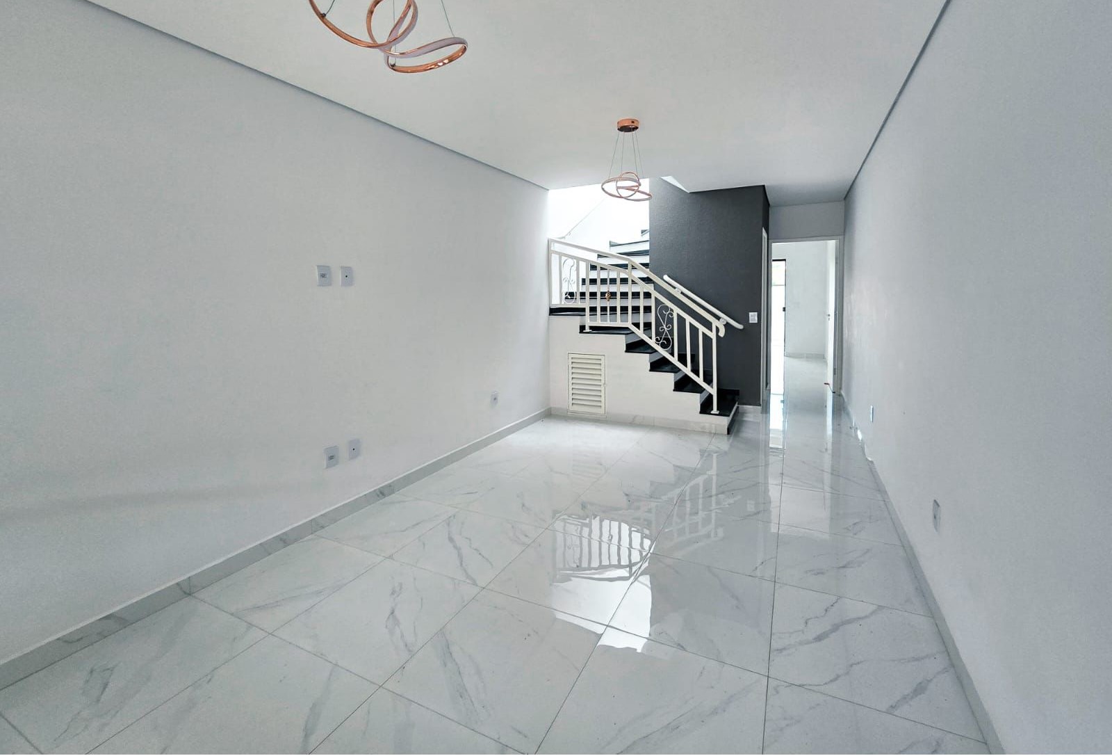 Moderno, sala de estar e de jantar, cozinha com ótimo aproveitamento da luz natural, ambientes com piso porcelanato, lavabo, escada em granito, 3 suítes com piso já colocado, 2 sacadas, espaço gourmet coberto com churrasqueira, quintal e 2 vagas de garagem.