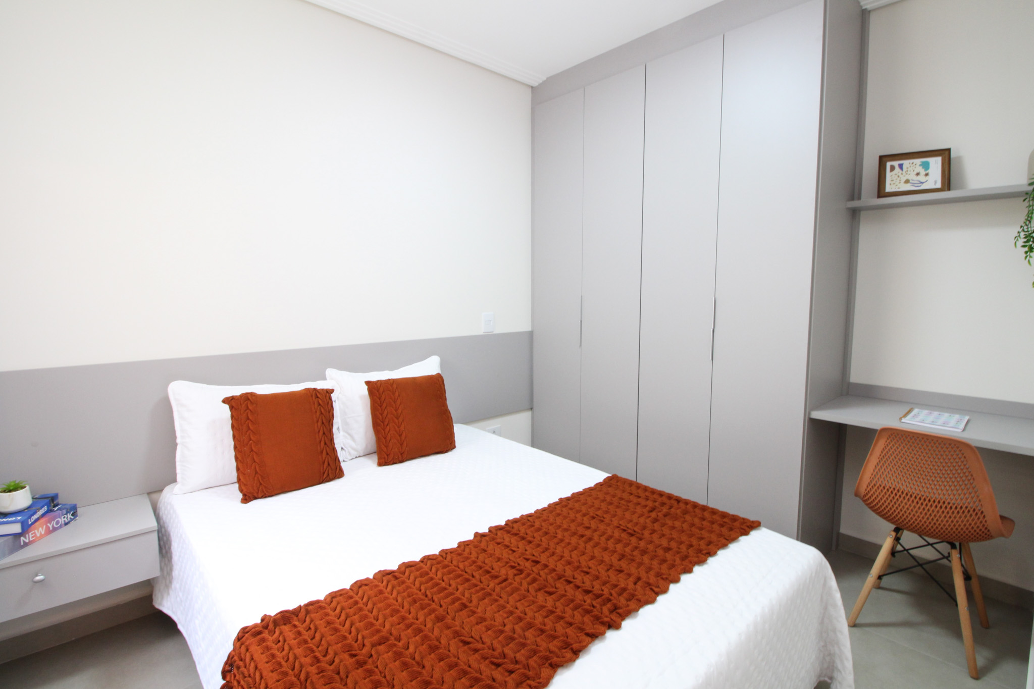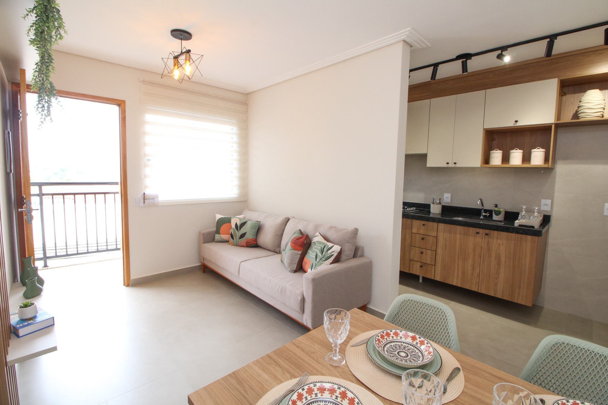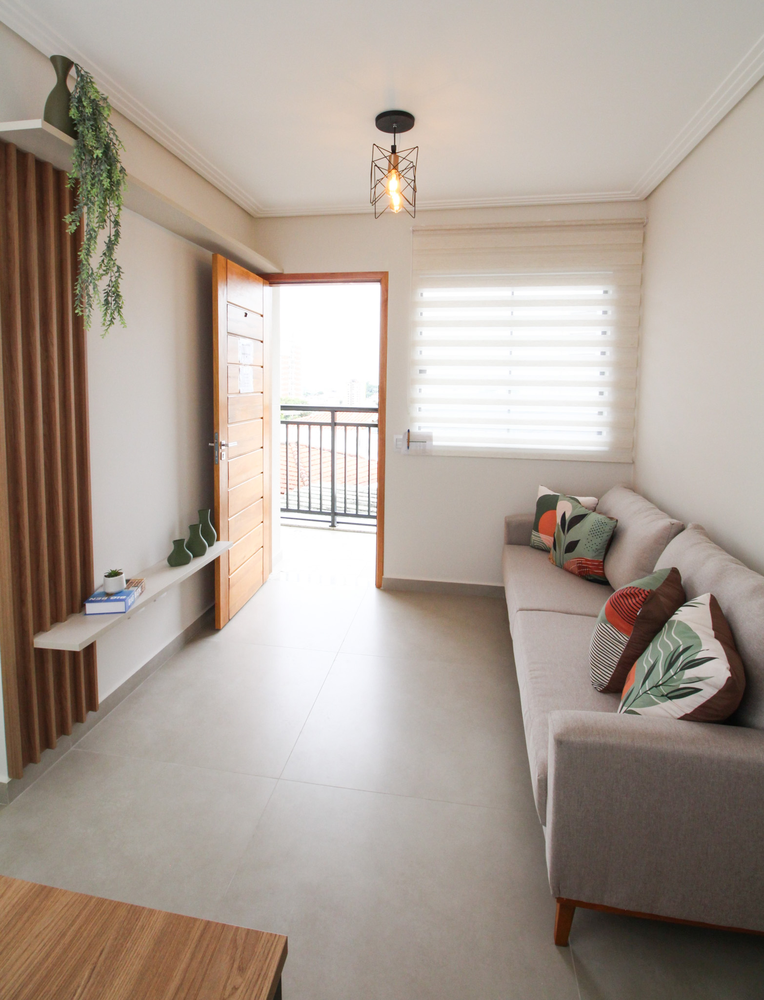 Todo em piso porcelanato, sala confortável, cozinha planejada, 2 bons dormitórios, banheiro moderno e SEM vaga de garagem.